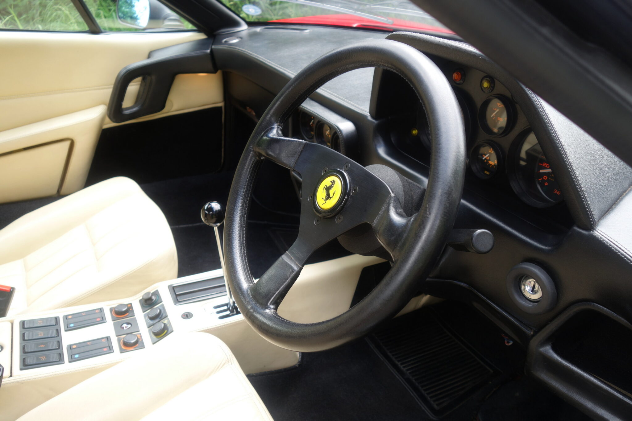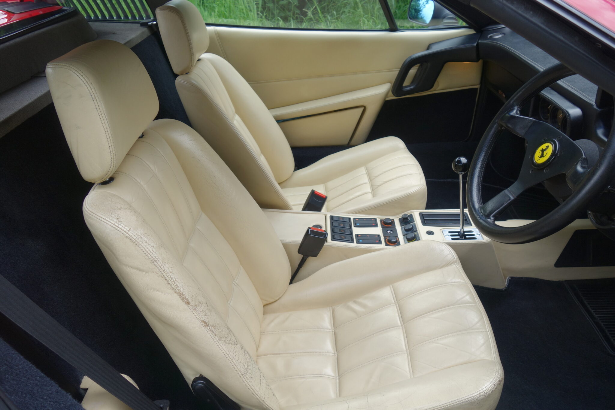 - The Crema leather interior has factory equipment including electric windows and mirrors, air conditioning and a Momo steering wheel.