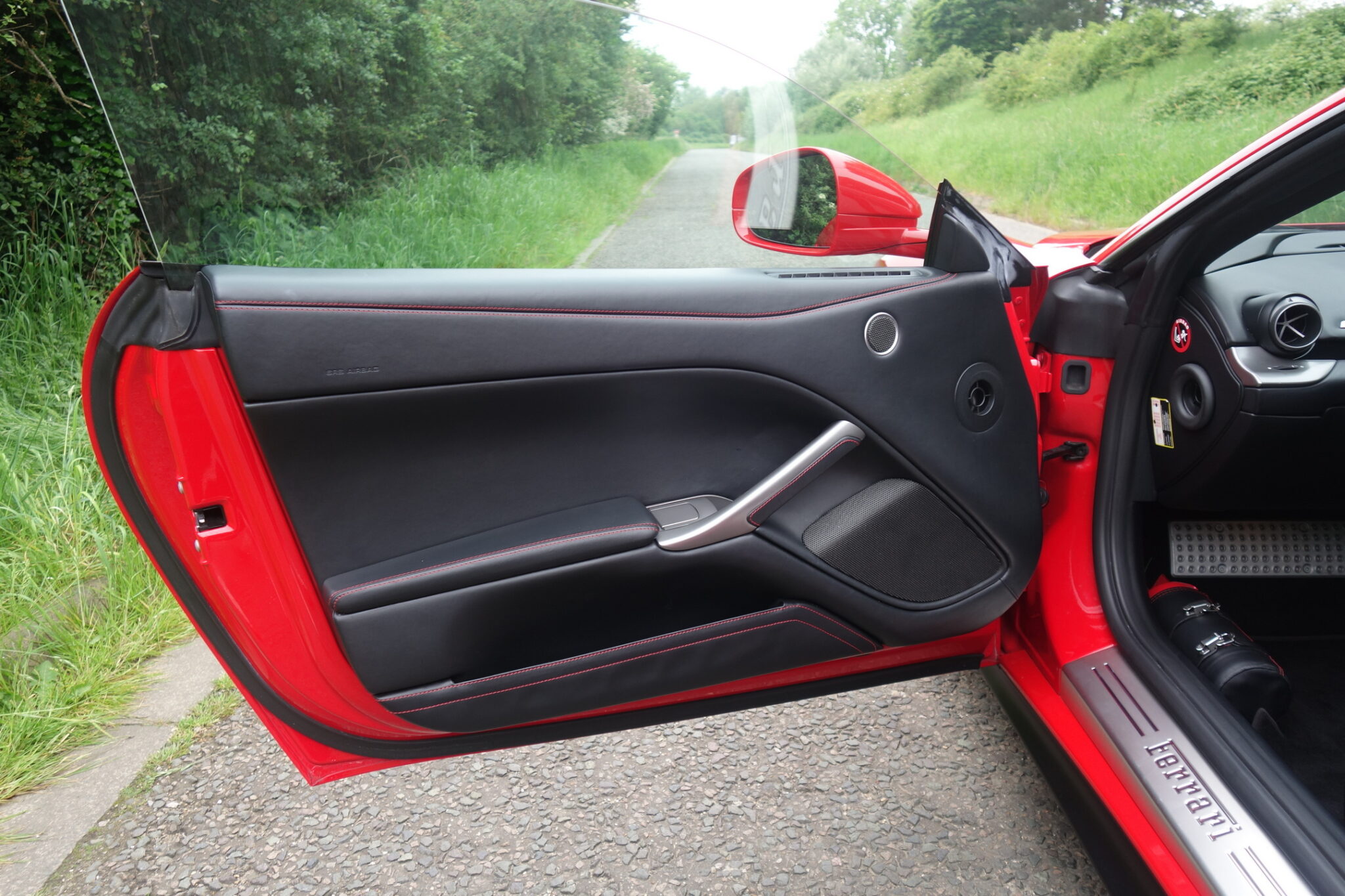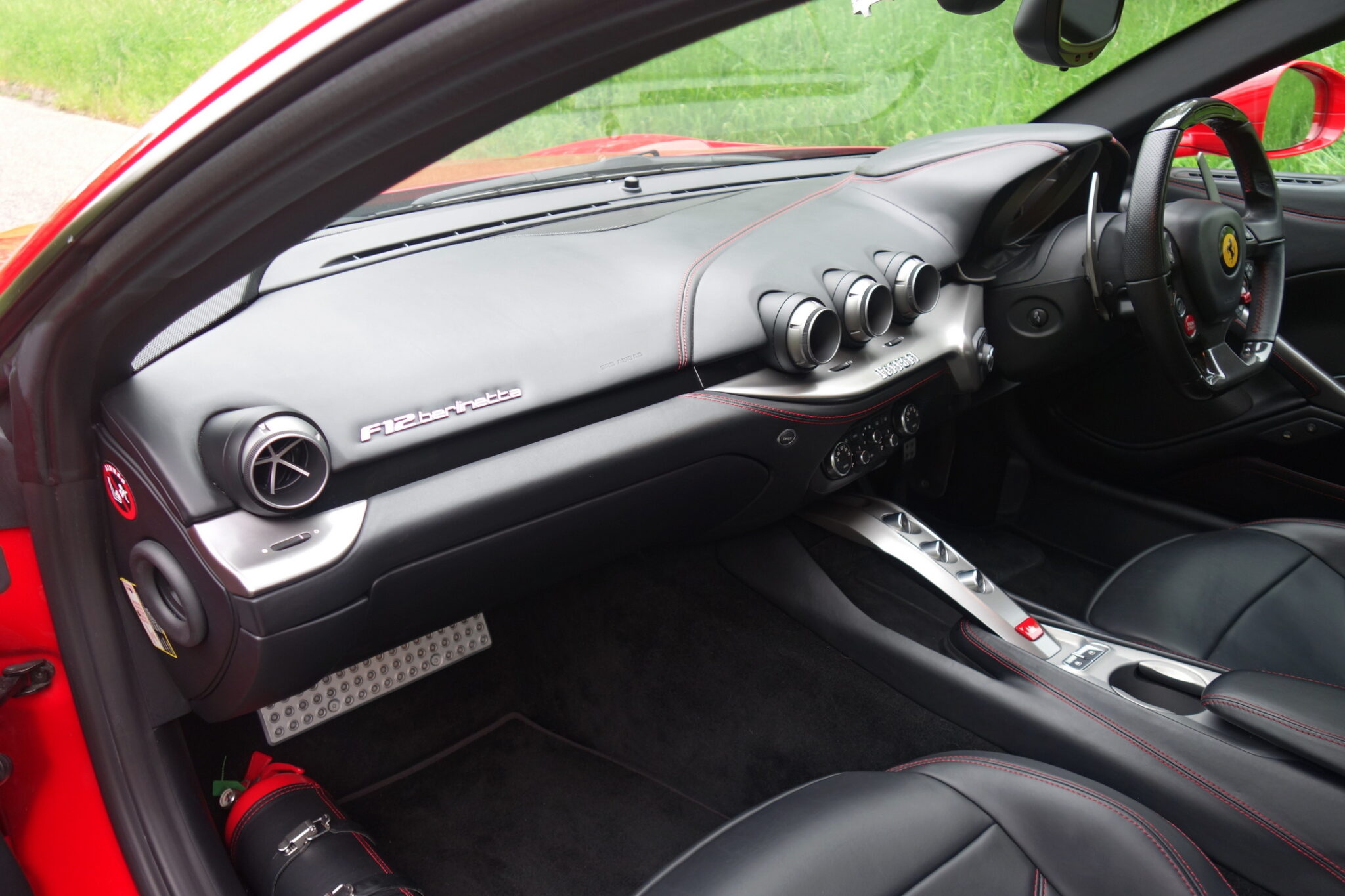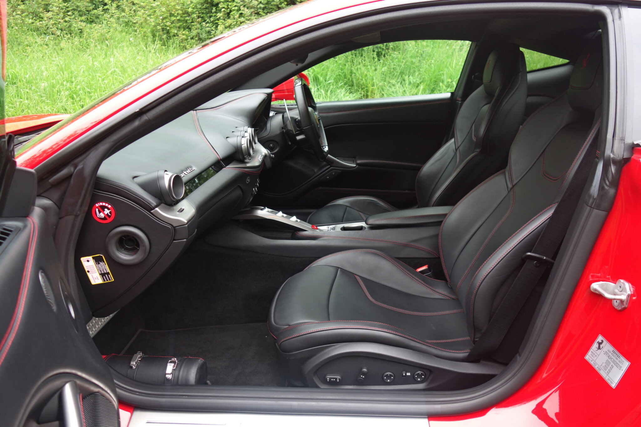 - This F12 Berlinetta is finished in Rosso Corsa with Scuderia wing shields, and Nero leather upholstery with contrast red stitching.