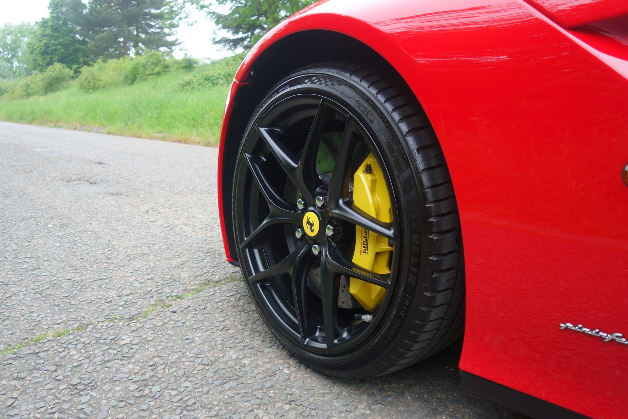 - It is equipped with a set of 20-inch gloss black forged alloy wheels, with the correct Michelin Pilot Super Sport tyres, housing carbon ceramic discs and Giallo calipers.